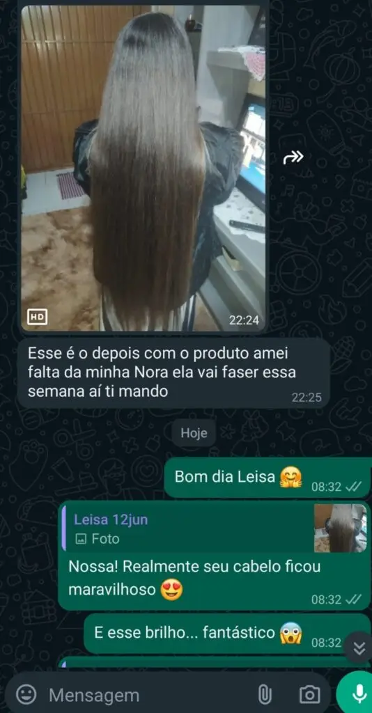 Meu cabelo ficou maravilhoso! 🥰 Super macio, sem frizz e com brilho. E o melhor: chegou rapidinho! Recomendo demais! 😍💖